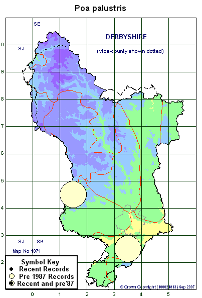 Ashbourne (SK1746) in 1956, and Bretby Pond (SK32) in 1954. It was sown as a fodder grass and has sometimes been introduced in imported grain. It is indigenous to central Europe.
